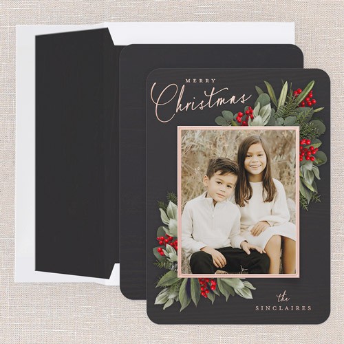 Send a holiday card friends and family will love. Add your own greeting and everyone's names. There's room for more photos and wishes on the back, too.