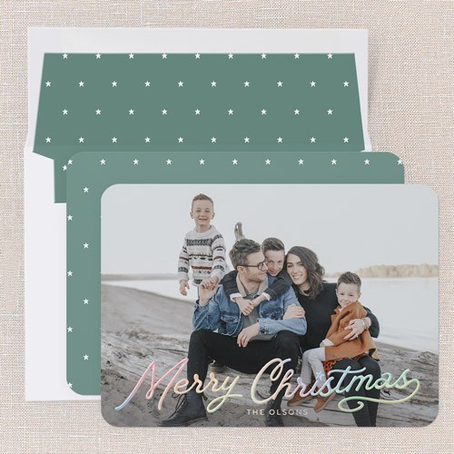 Send a holiday card friends and family will love. Add your own greeting and everyone's names. There's room for more photos and wishes on the back, too.