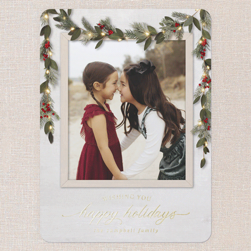 Send a holiday card friends and family will love. Add your own greeting and everyone's names. There's room for more photos and wishes on the back, too.