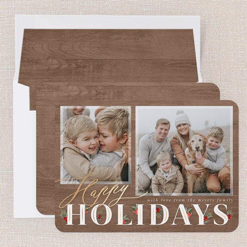 Send a holiday card friends and family will love. Add your own greeting and everyone's names. There's room for more photos and wishes on the back, too.