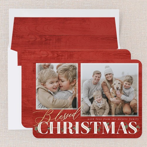 Send a holiday card friends and family will love. Add your own greeting and everyone's names. There's room for more photos and wishes on the back, too.
