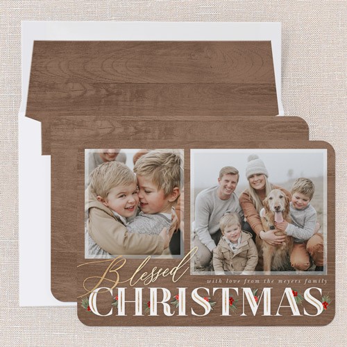 Send a holiday card friends and family will love. Add your own greeting and everyone's names. There's room for more photos and wishes on the back, too.