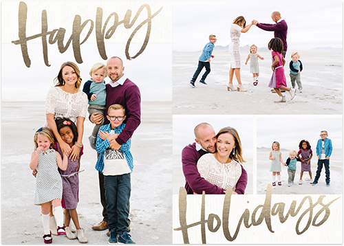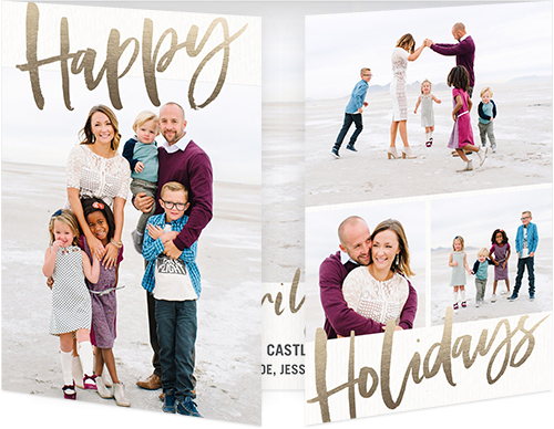 Send a holiday card friends and family will love. Add your own greeting and everyone's names. There's room for more photos and wishes on the back, too.