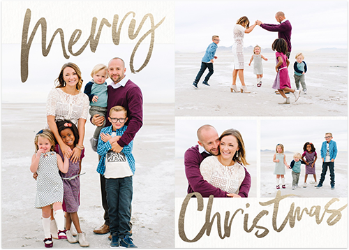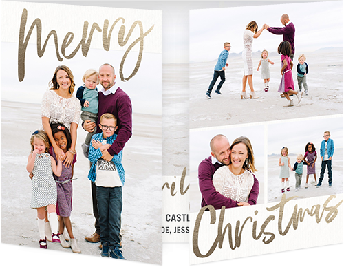 Send a holiday card friends and family will love. Add your own greeting and everyone's names. There's room for more photos and wishes on the back, too.