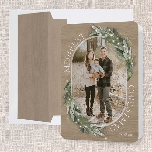 Make your photos shine in this holiday card. Add photos and holiday wishes on the front, back and inside, too.