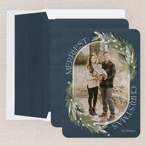 Make your photos shine in this holiday card. Add photos and holiday wishes on the front, back and inside, too.