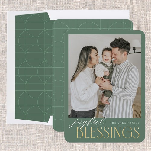 Make your photos shine in this holiday card. Add photos and holiday wishes on the front, back and inside, too.