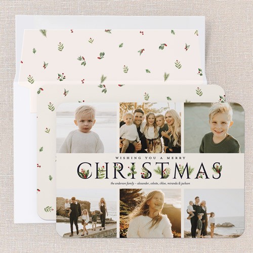 Send a holiday card friends and family will love. Add your own greeting and everyone's names. There's room for more photos and wishes on the back, too.