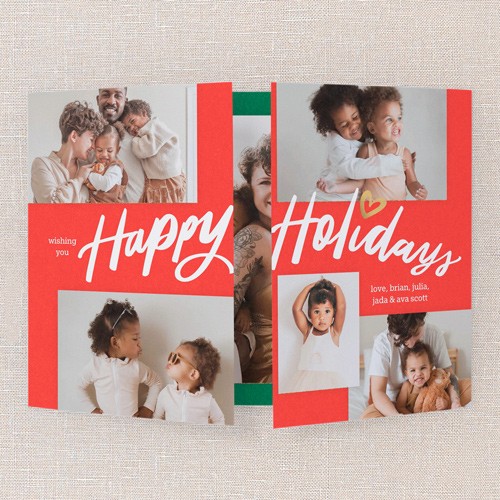 Send a holiday card friends and family will love. Add your own greeting and everyone's names. There's room for more photos and wishes on the back, too.