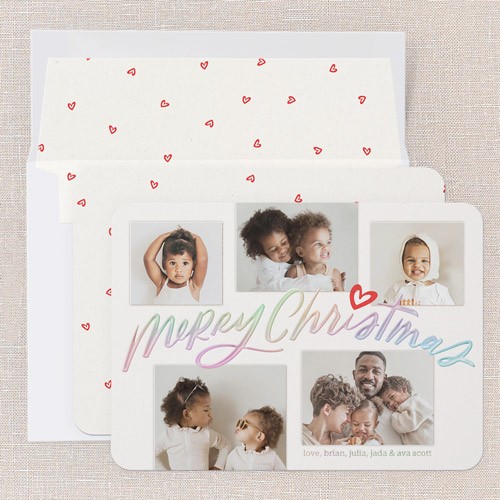 Send a holiday card friends and family will love. Add your own greeting and everyone's names. There's room for more photos and wishes on the back, too.