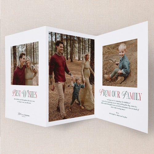 Send a holiday card friends and family will love. Add your own greeting and everyone's names. There's room for more photos and wishes on the back, too.
