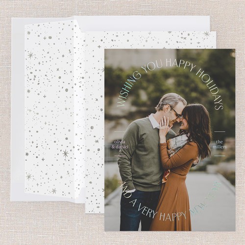 Send a holiday card friends and family will love. Add your own greeting and everyone's names. There's room for more photos and wishes on the back, too.