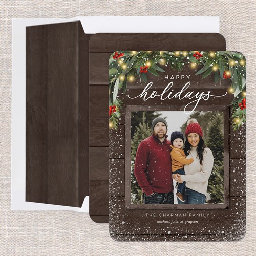 Send a holiday card friends and family will love. Add your own greeting and everyone's names. There's room for more photos and wishes on the back, too.