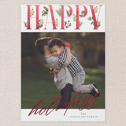 Send a holiday card friends and family will love. Add your own greeting and everyone's names. There's room for more photos and wishes on the back, too.