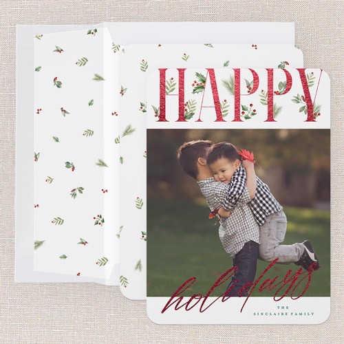 Send a holiday card friends and family will love. Add your own greeting and everyone's names. There's room for more photos and wishes on the back, too.