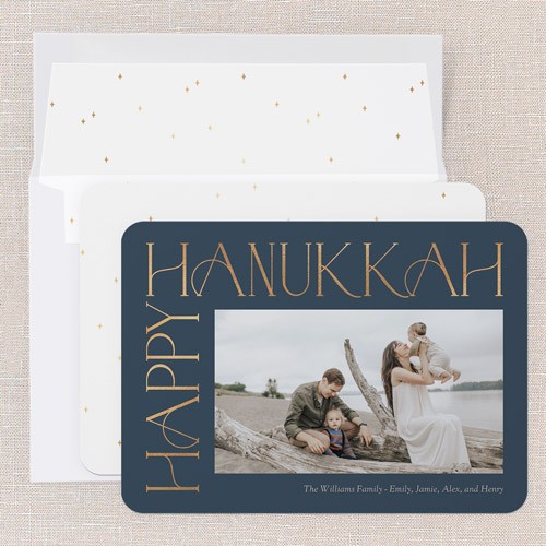 Make your photos shine in this holiday card. Add photos and holiday wishes on the front, back and inside, too.