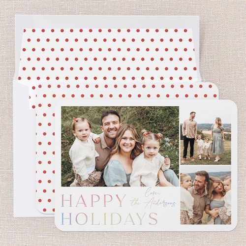 Send a holiday card friends and family will love. Add your own greeting and everyone's names. There's room for more photos and wishes on the back, too.