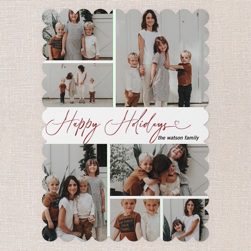 Share all your favorite moments with this classic multi photo holiday card. The design features a clean, timeless layout with space for up to seven photos—perfect for families who want to showcase a year’s worth of memories. Choose from the elegant greeting “Merry Christmas” or “Happy Holidays” and personalize the card by adding your family name. Select a crisp white background or click the color wheel icon to choose your own background color, making it easy to coordinate with your photos. This 6x8-sized Christmas card gives you plenty of room to add more pictures and a heartfelt message on the back. It’s a warm, personal way to connect with loved ones and share your story this season.