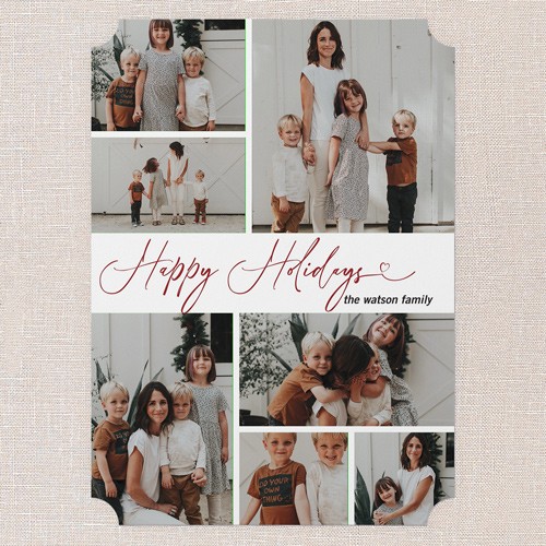 Share all your favorite moments with this classic multi photo holiday card. The design features a clean, timeless layout with space for up to seven photos—perfect for families who want to showcase a year’s worth of memories. Choose from the elegant greeting “Merry Christmas” or “Happy Holidays” and personalize the card by adding your family name. Select a crisp white background or click the color wheel icon to choose your own background color, making it easy to coordinate with your photos. This 6x8-sized Christmas card gives you plenty of room to add more pictures and a heartfelt message on the back. It’s a warm, personal way to connect with loved ones and share your story this season.
