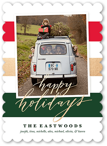 Send a holiday card friends and family will love. Add your own greeting and everyone's names. There's room for more photos and wishes on the back, too.