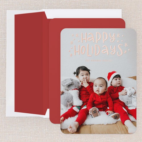 Send a holiday card friends and family will love. Add your own greeting and everyone's names. There's room for more photos and wishes on the back, too.