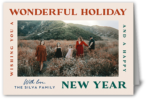 Make your photos shine in this holiday card. Add photos and holiday wishes on the front, back and inside, too.