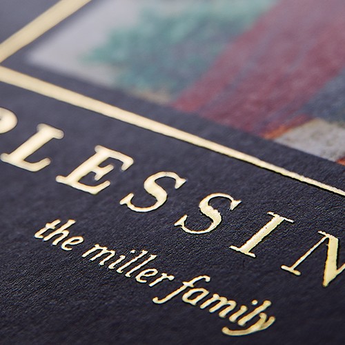 Illuminate your card with real foil in a raised texture for a premium finish. Personalize your name or text in stunning foil.