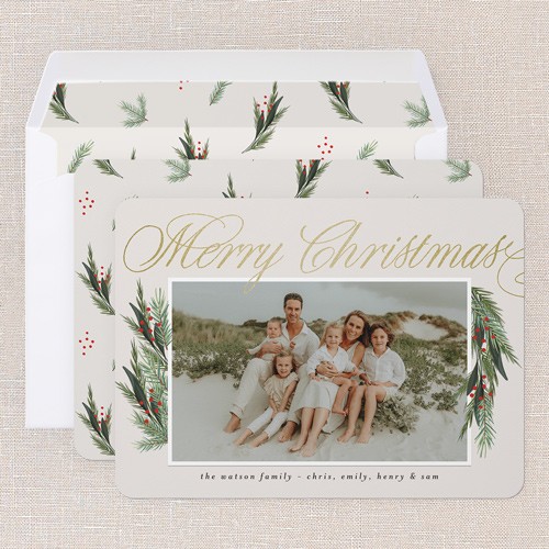 Send a holiday card friends and family will love. Add your own greeting and everyone's names. There's room for more photos and wishes on the back, too.