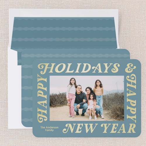 Send a holiday card friends and family will love. Add your own greeting and everyone's names. There's room for more photos and wishes on the back, too.