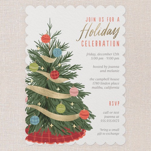 Ribboned Pine Holiday Invitation