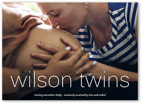 Share your exciting news with this cheerful pregnancy announcement. Let others know your little one is on the way with a happy baby belly, your favorite picture and an expected arrival date.
