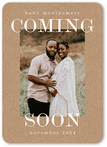 Share your exciting news with this cheerful pregnancy announcement. Let others know your little one is on the way with a happy baby belly, your favorite picture and an expected arrival date.