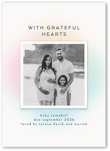 Share your exciting news with this cheerful pregnancy announcement. Let others know your little one is on the way with a happy baby belly, your favorite picture and an expected arrival date.
