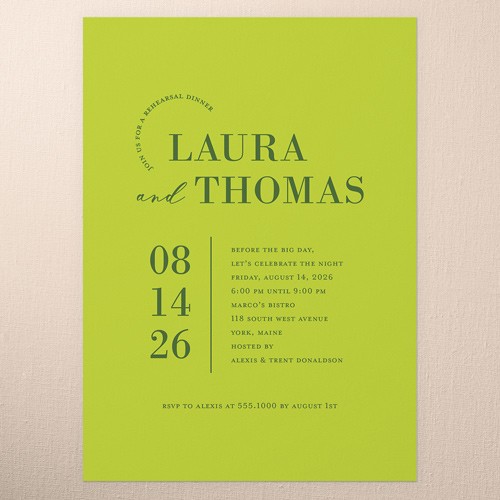 The big night before the big day. Invite all your guests with stylish rehearsal dinner invitations.