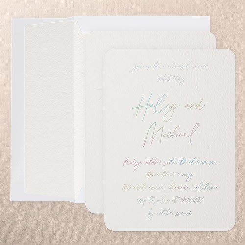 The big night before the big day. Invite all your guests with stylish rehearsal dinner invitations.