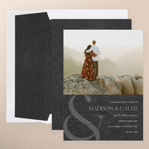 The big night before the big day. Invite all your guests with stylish rehearsal dinner invitations.