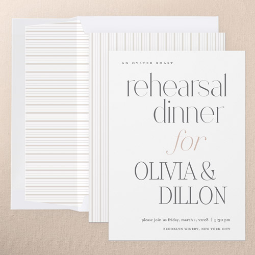 The big night before the big day. Invite all your guests with stylish rehearsal dinner invitations.