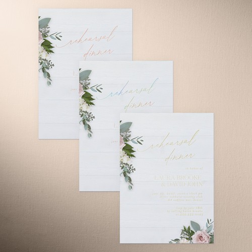 The big night before the big day. Invite all your guests with stylish rehearsal dinner invitations.