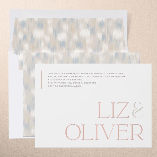 The big night before the big day. Invite all your guests with stylish rehearsal dinner invitations.