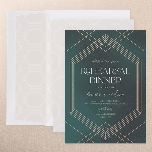 The big night before the big day. Invite all your guests with stylish rehearsal dinner invitations.