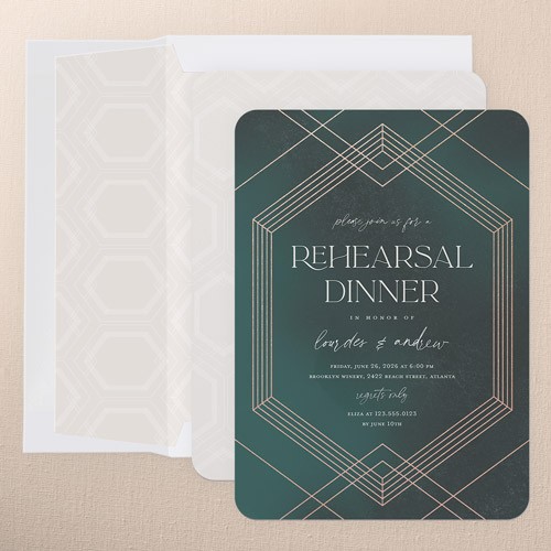 The big night before the big day. Invite all your guests with stylish rehearsal dinner invitations.