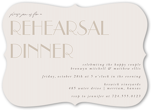 The big night before the big day. Invite all your guests with stylish rehearsal dinner invitations.