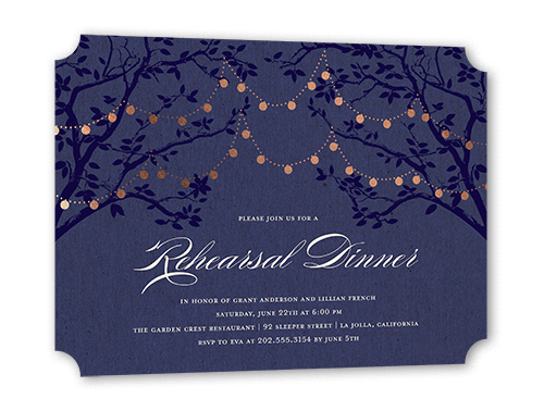 The big night before the big day. Invite all your guests with stylish rehearsal dinner invitations.