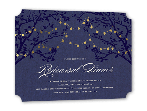 The big night before the big day. Invite all your guests with stylish rehearsal dinner invitations.