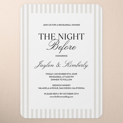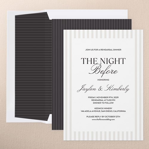 The big night before the big day. Invite all your guests with stylish rehearsal dinner invitations.