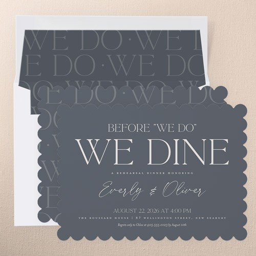 The big night before the big day. Invite all your guests with stylish rehearsal dinner invitations.