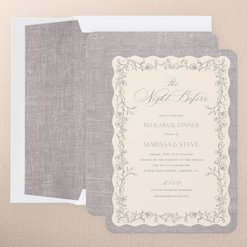The big night before the big day. Invite all your guests with stylish rehearsal dinner invitations.
