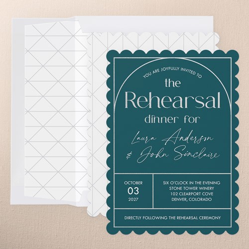The big night before the big day. Invite all your guests with stylish rehearsal dinner invitations.