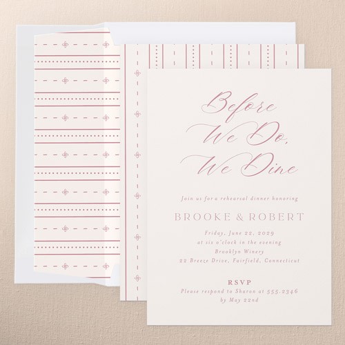 The big night before the big day. Invite all your guests with stylish rehearsal dinner invitations.