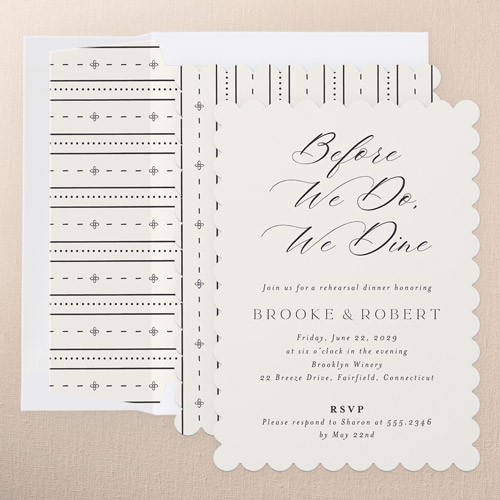 The big night before the big day. Invite all your guests with stylish rehearsal dinner invitations.